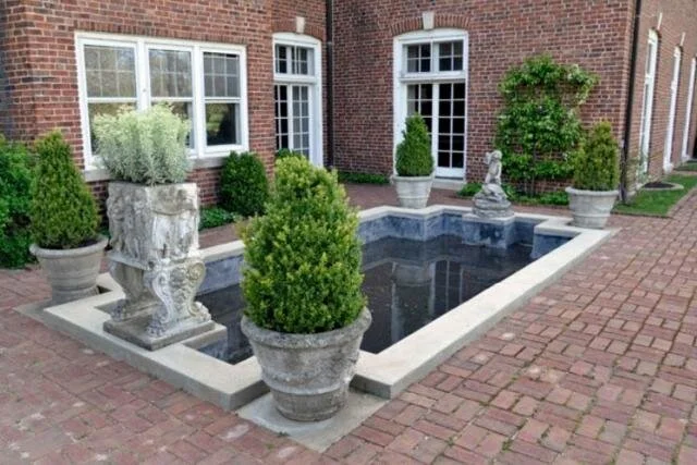 The century-old reflecting pool at Glen Rowan House, Lake Forest College, has been replanted and restored.