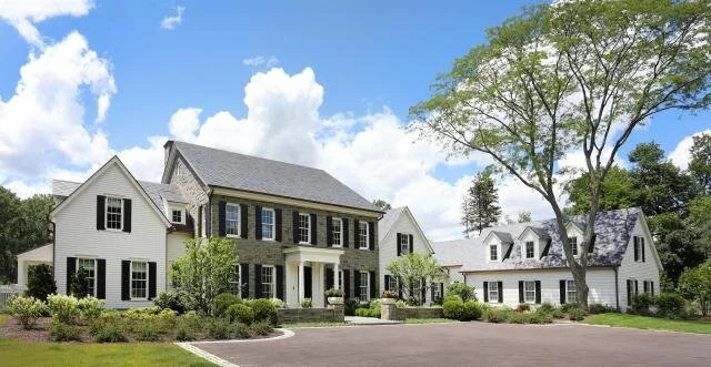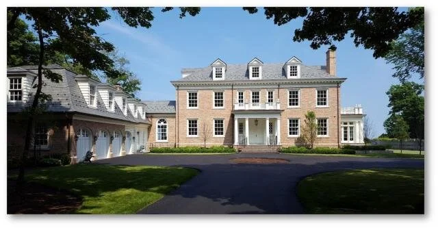 This new construction on approximately four acres replaces a restrained mid-century shingled Colonial.