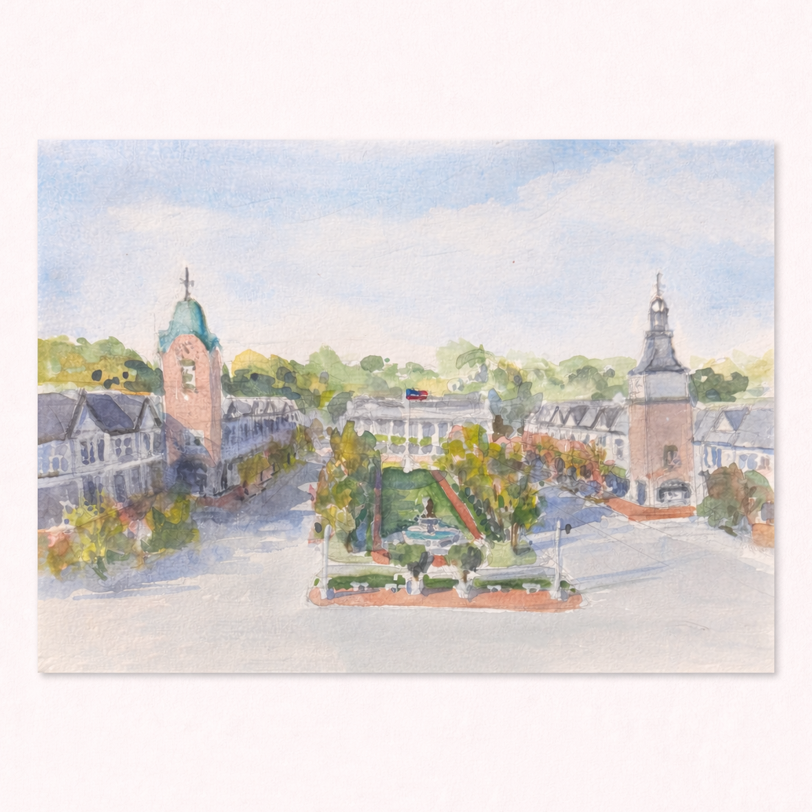 Vilppu’s evocative image of Market Square is also featured on handmade silk scarves and pocket squares created by local artist Alesia C.