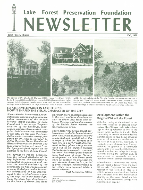 Lake Forest Preservation Foundation members receive a subscription to Preservation, the Foundation’s newsletter. Here is our newsletter archive.